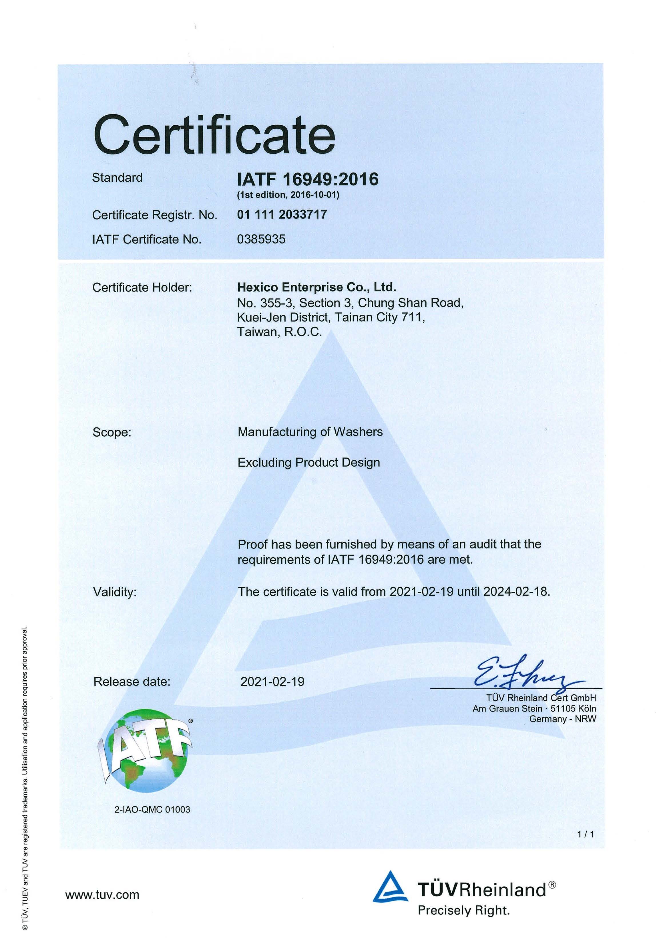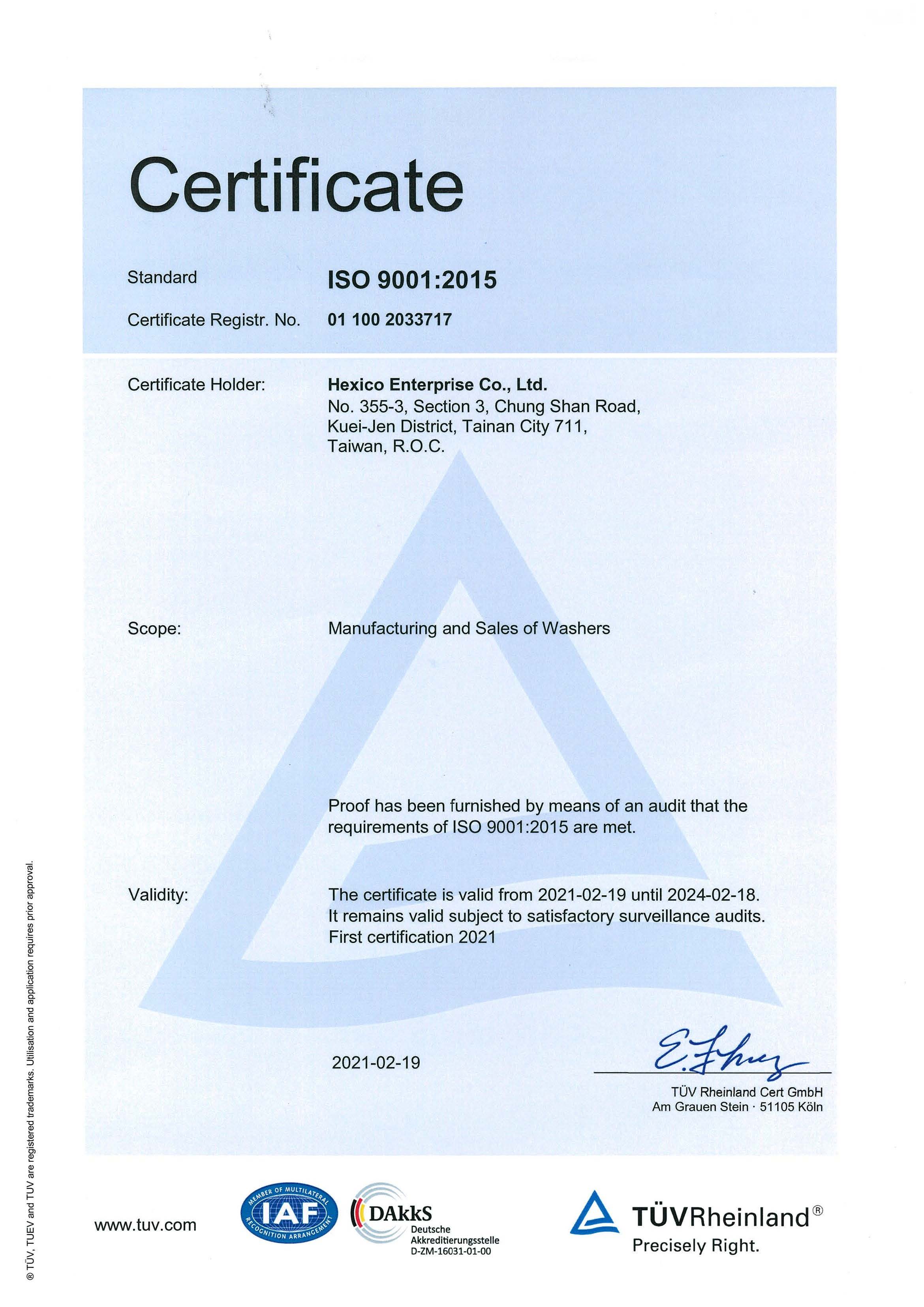 『Hexico Enterprise Co., LTD』, an affiliated company of San Shing Fastech Corp., was established in 1995. Hexico was the first professional manufacturer in Taiwan to produce the high tension washers